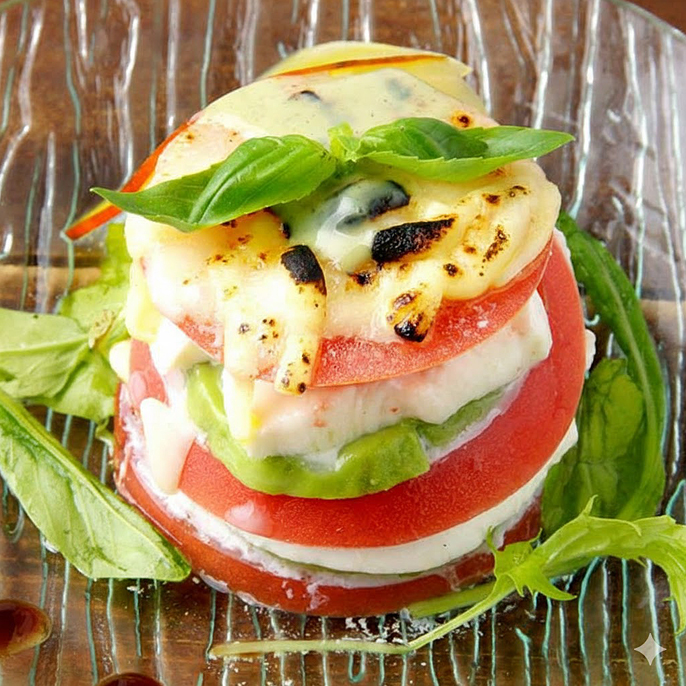 焼きトマトのカプレーゼ アボカドミルフィーユ